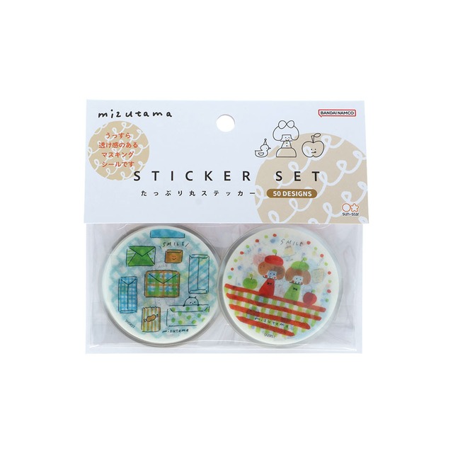 たっぷり丸ステッカー BE(ベージュ) mizutamaさんがコースターへ描いた作品がそのままシールに! 今回はうっすら透け感のあるマスキングシール素材です 内容:50枚 本体サイズ:Φ50mm 材質:紙 生産地:中国 サンスター文具 mizutama4 シール フレークシール