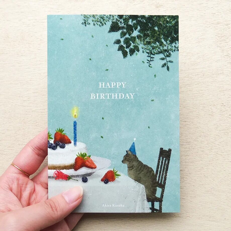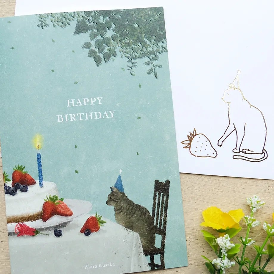 日下明 バースデーカード 猫とケーキ