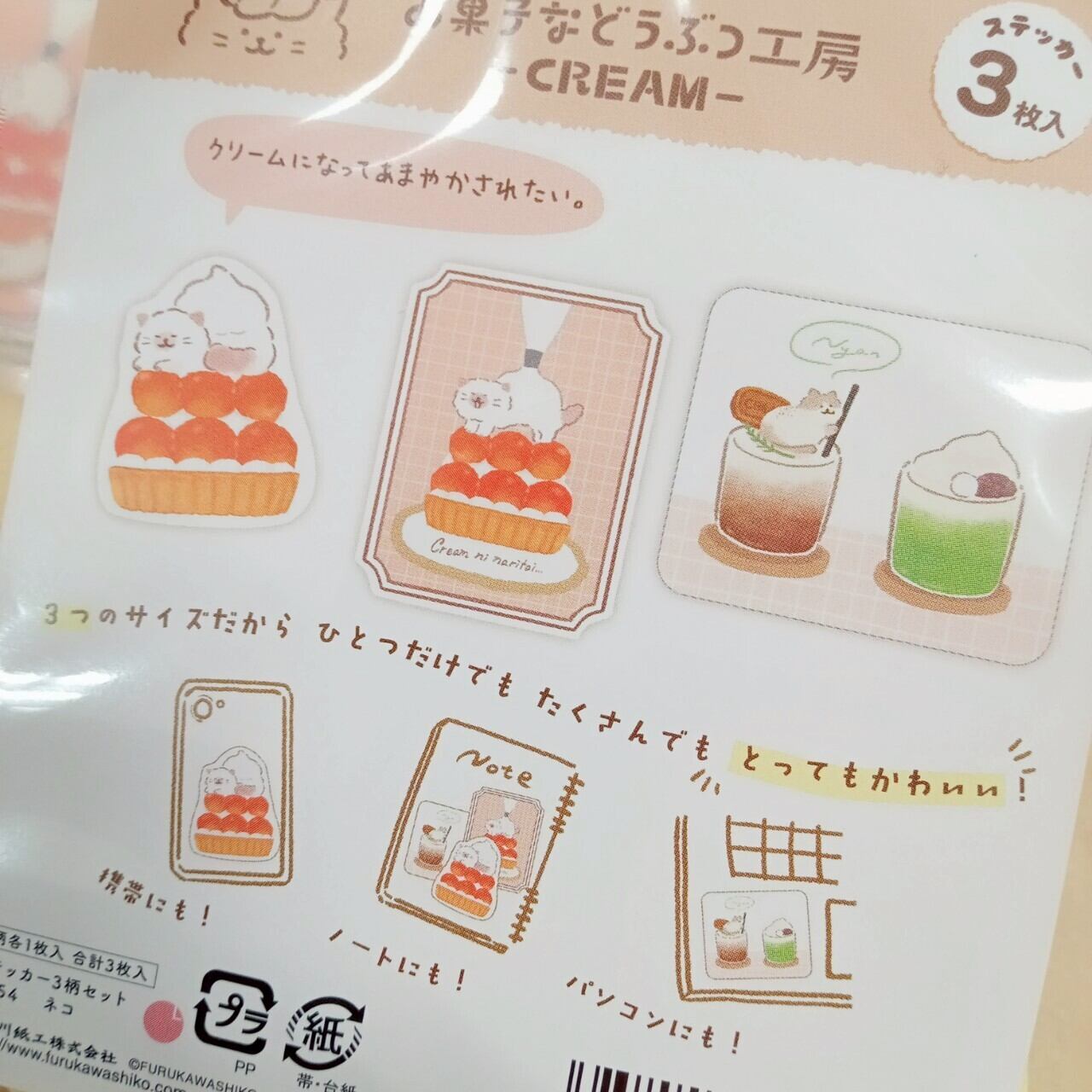 お菓子などうぶつ工房 -CREAM- ステッカー3柄セット ネコ