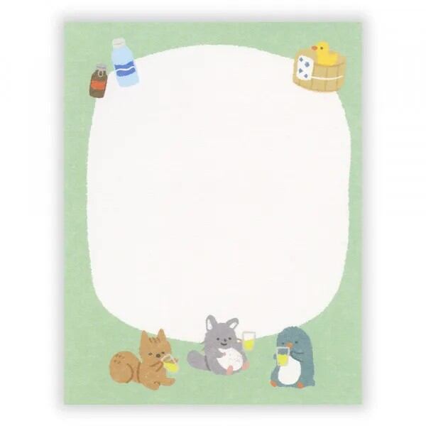 趣味のサウナを楽しむ動物たちを描いたメモです