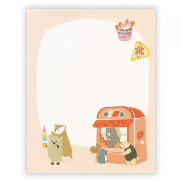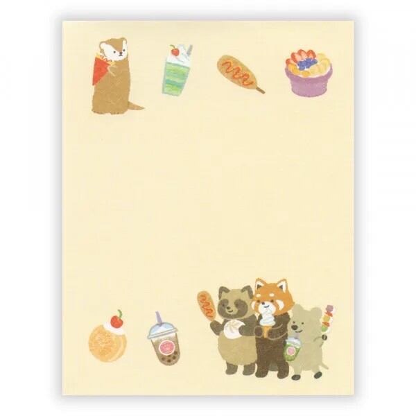 趣味の食べ歩きを楽しむ動物たちを描いたメモです