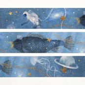 深い青色を漂う宇宙飛行士や魚たちが描かれた、イラストレーター・日下明のマスキングテープ