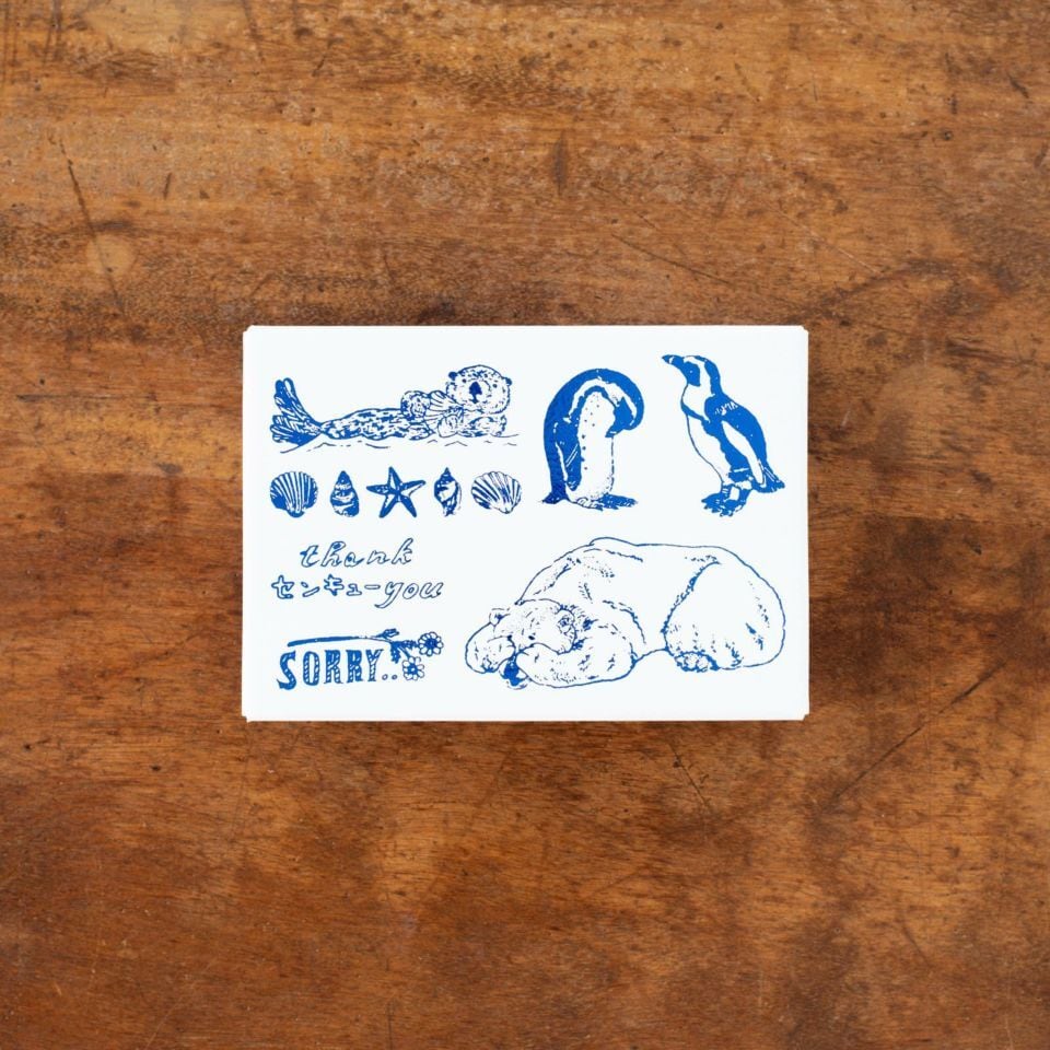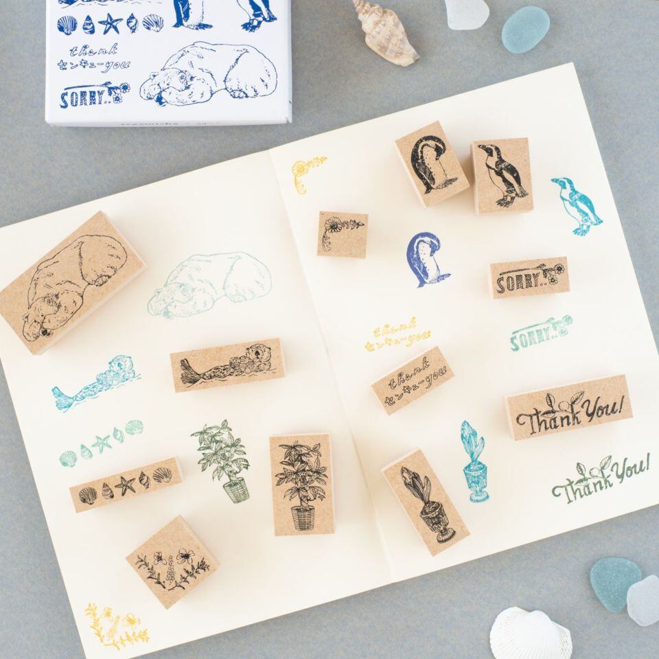 文字スタンプと動物スタンプを組み合わせて押したり、貝殻のスタンプを繋げてフレームのようにしてみたり、ぜひ色々な組み合わせでお楽しみください