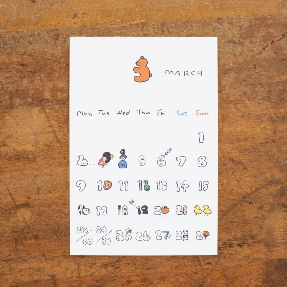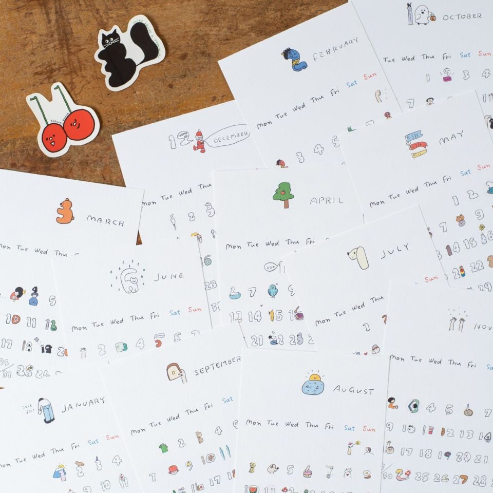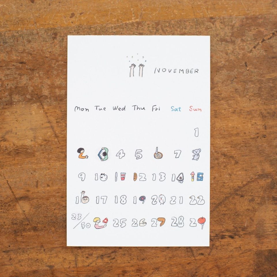 日付の中に隠れた愛らしい動物や、食べ物のキャラクターたちに思わずクスッとしてしまいます