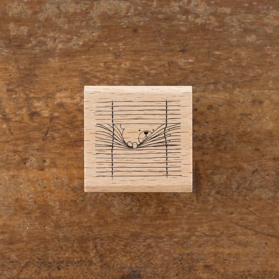 ブラインドの隙間からこっそり見ているくまさんのスタンプ