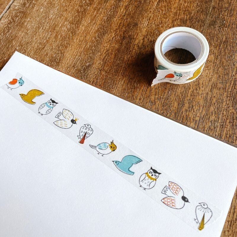 カラフルに差し色を加えた鳥のマスキングテープです