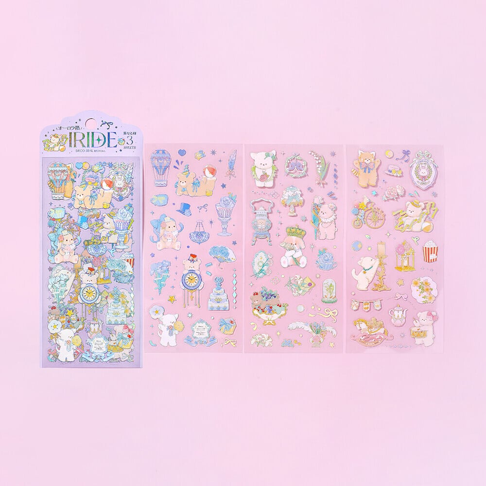キラッキラのオーロラ箔が美しいシートシール3枚入り、すべて違うデザインです!