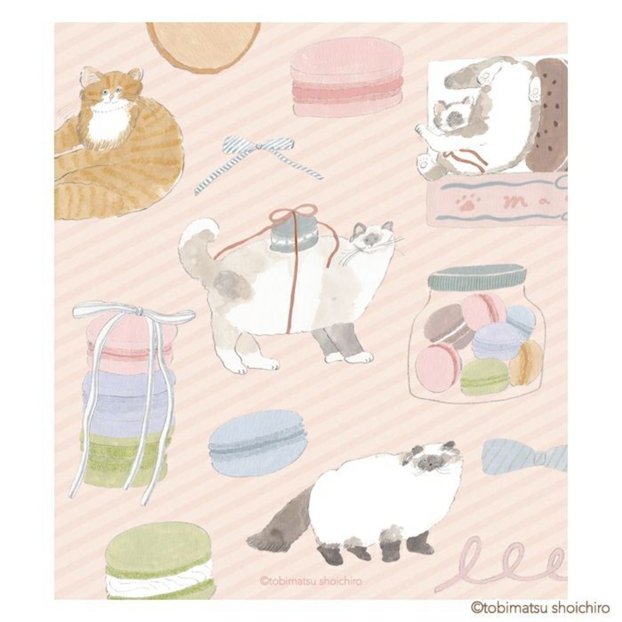 いま注目のイラストレーター・トビマツショウイチロウさんによる、たくさんのネコと甘いスイーツが描かれた特別なシリーズ