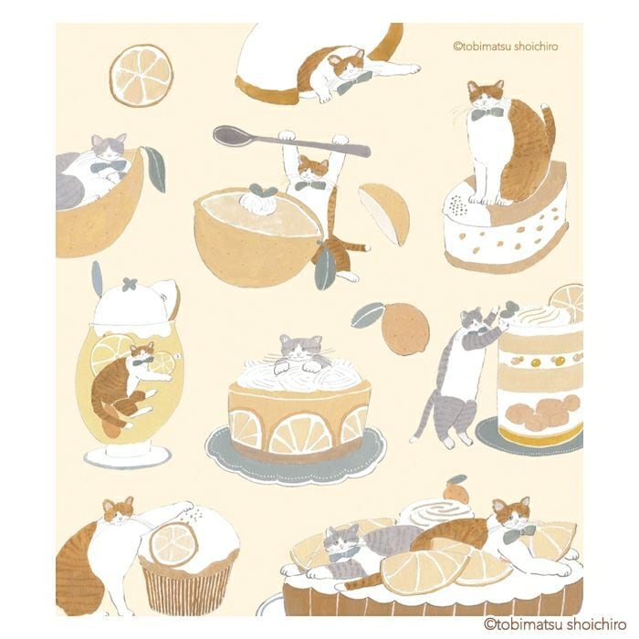 いま注目のイラストレーター・トビマツショウイチロウさんによる、たくさんのネコと甘いスイーツが描かれた特別なシリーズ