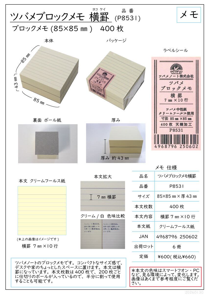 ツバメブロックメモ P8531 横罫