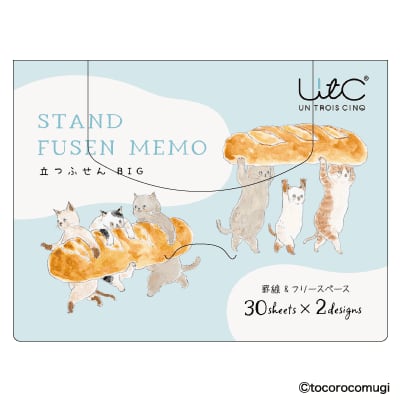 トコロコムギ 立つふせんBIG UTN353 てくてくパン屋さんにゃんこ