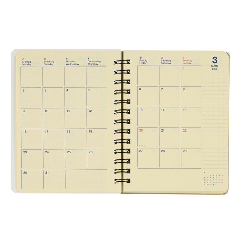 中面は、見開きの月間カレンダーとメモページで構成された、シンプルなマンスリータイプ