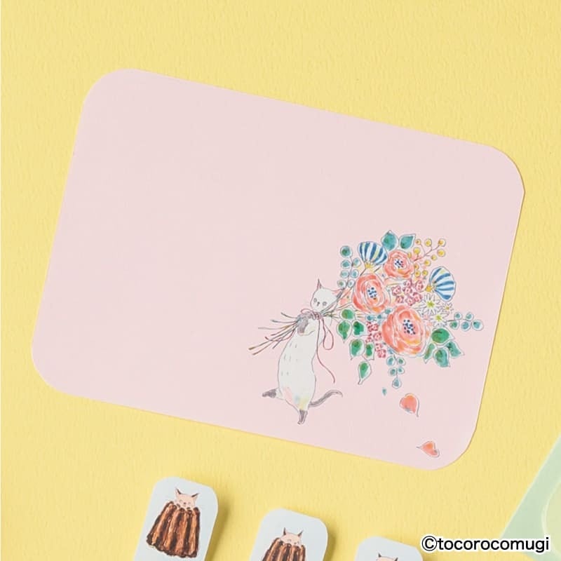 トコロコムギ しっかり貼れるピタふせん L(メッセージタイプ) おおきな花束にゃんこ