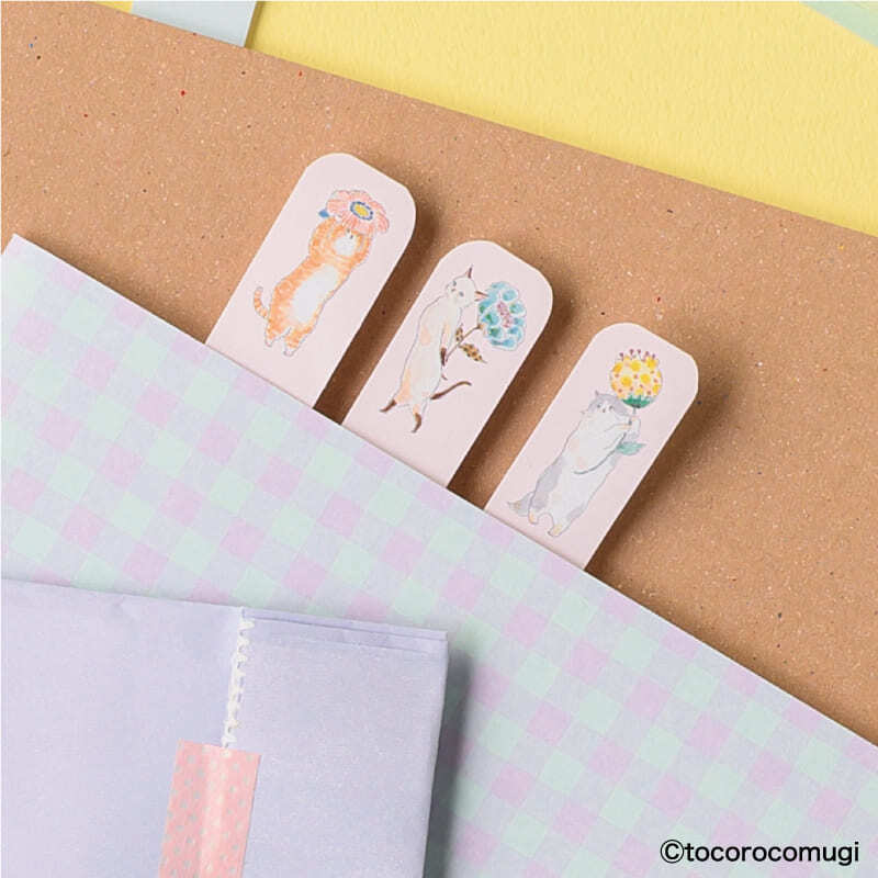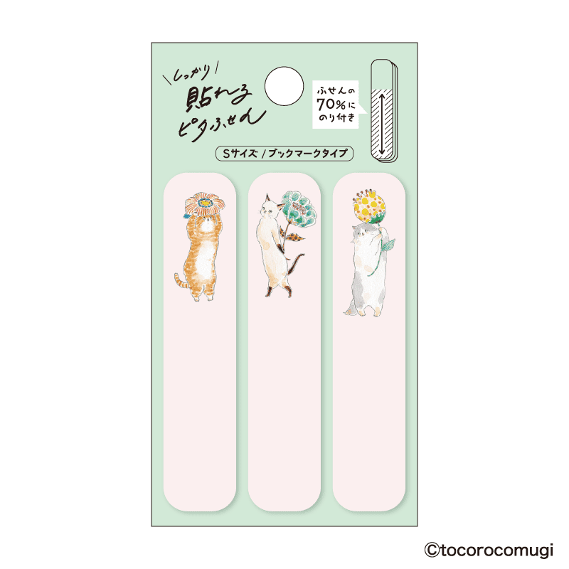 トコロコムギ しっかり貼れるピタふせん S(ブックマークタイプ) お花の妖精さんにゃんこ