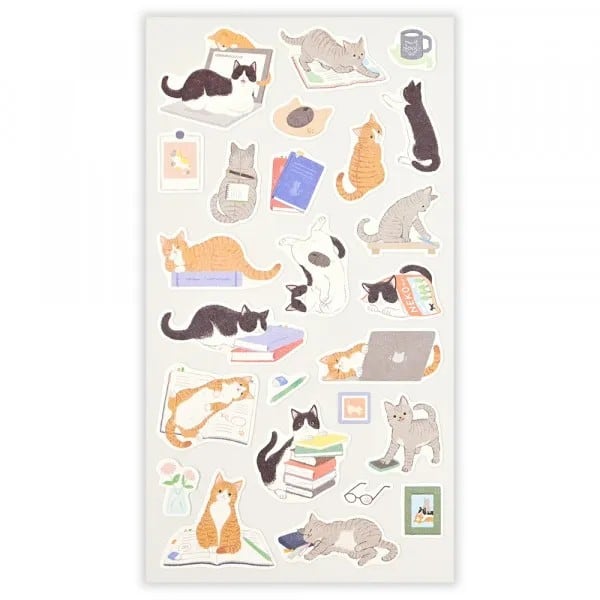 仲良しの猫たちが戯れる姿がかわいいシールです