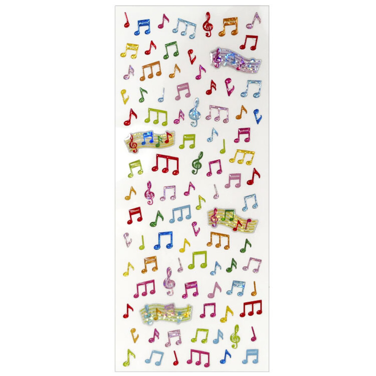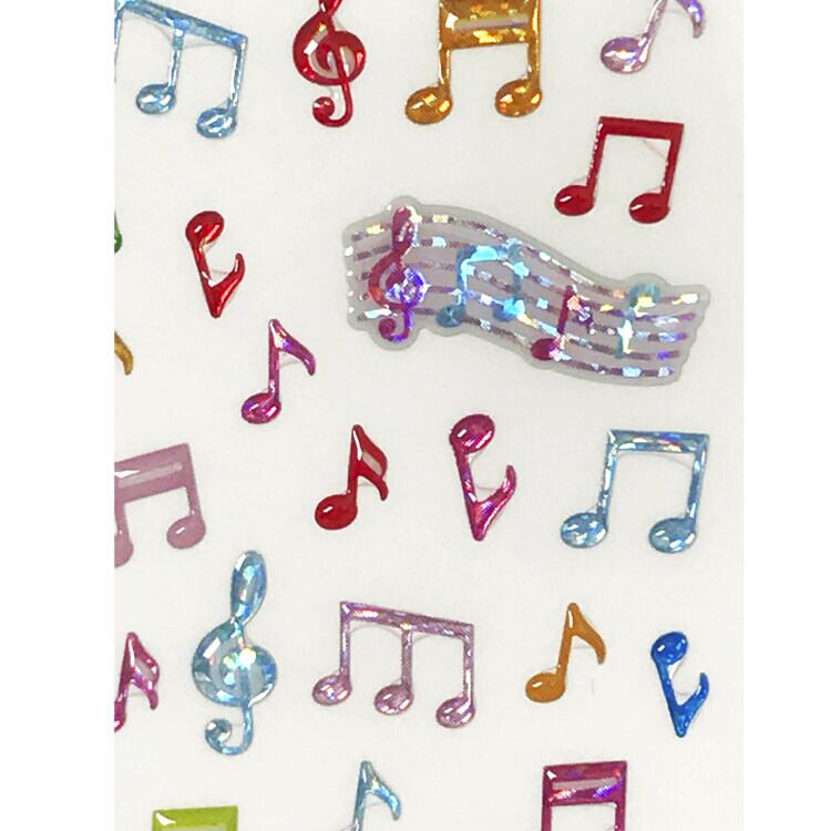 ホログラムのキラキラとぷっくりした盛り上がりと、カラフルな音符が可愛いドロップシールです