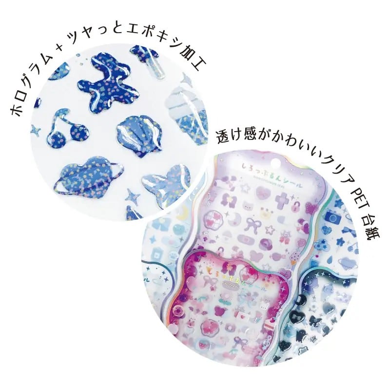 素材:クリアシール紙+ホログラム加工+エポキシ樹脂加工
