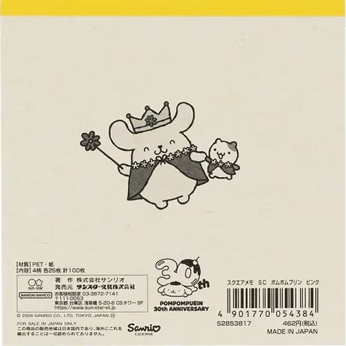 ポムポムプリン スクエアメモ ピンク