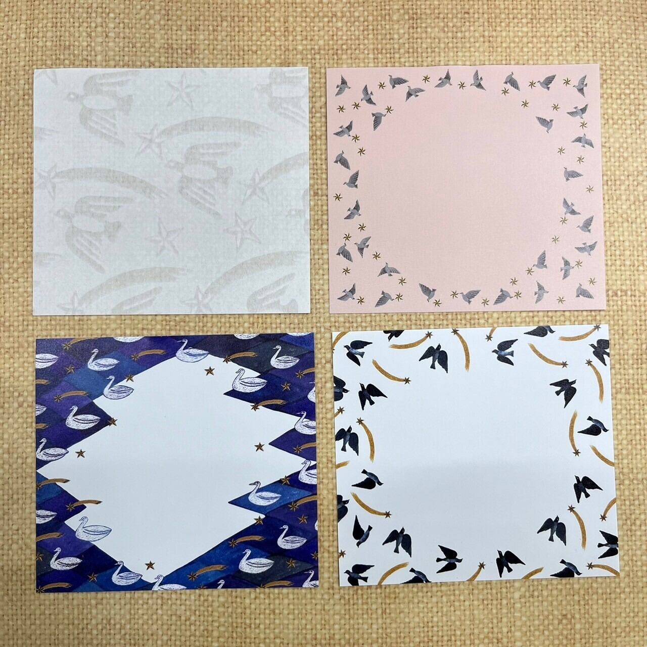 通常紙のメモ3柄と、透かし和紙のメモが1柄