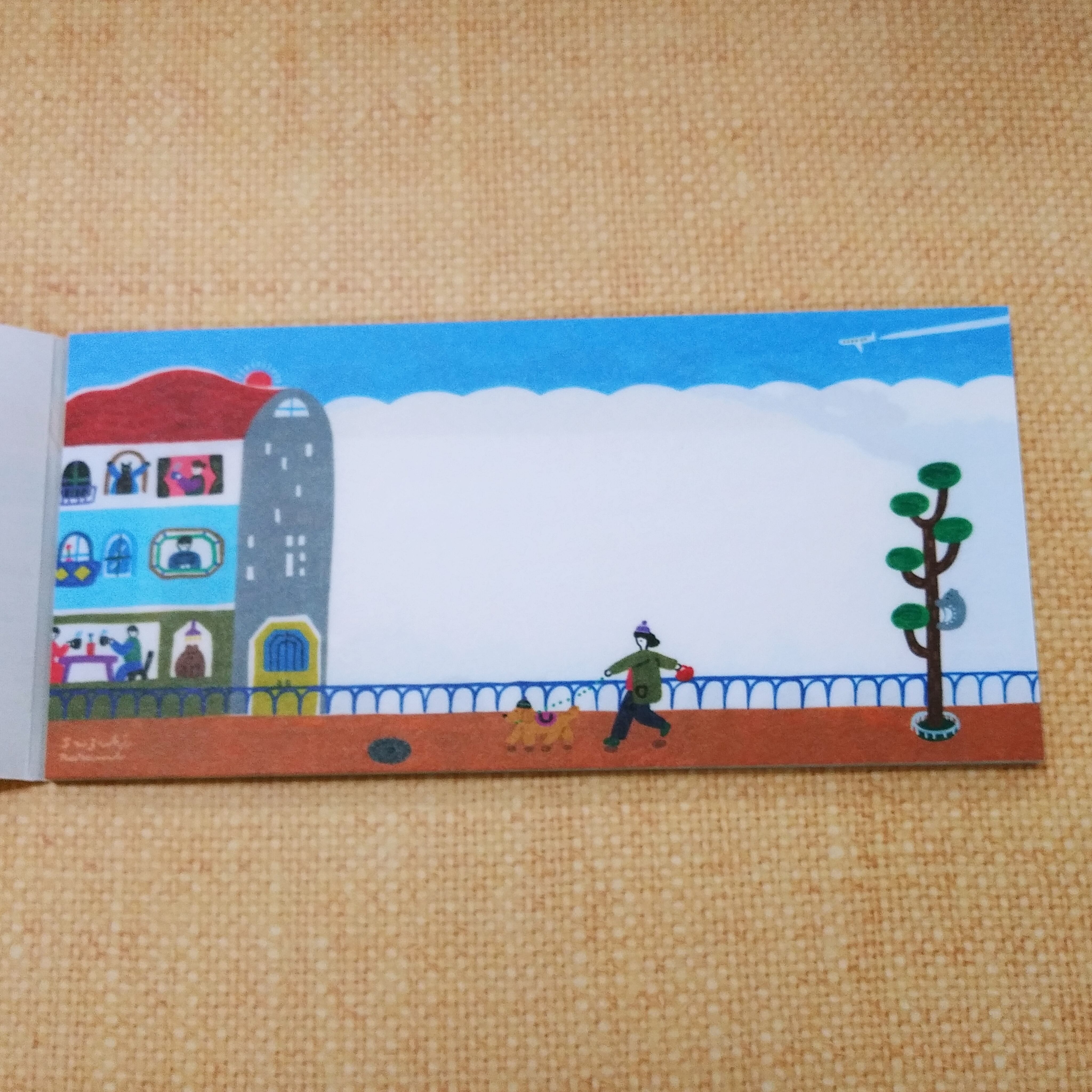 いろんな人やどうぶつたちが楽しそうに暮らす街の景色が描かれています