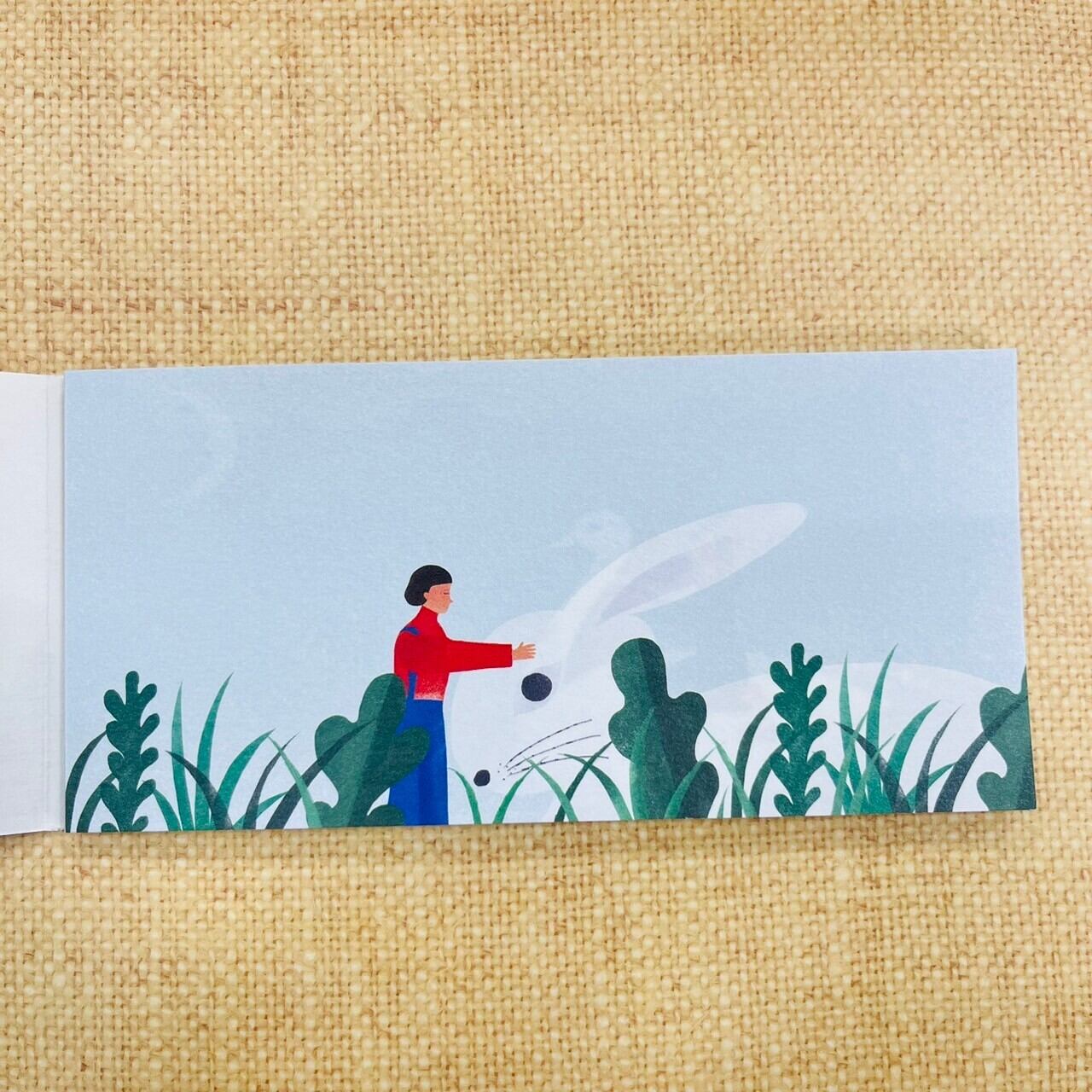 小さな小さな女の子が、ウサギや白鳥と旅をしている、