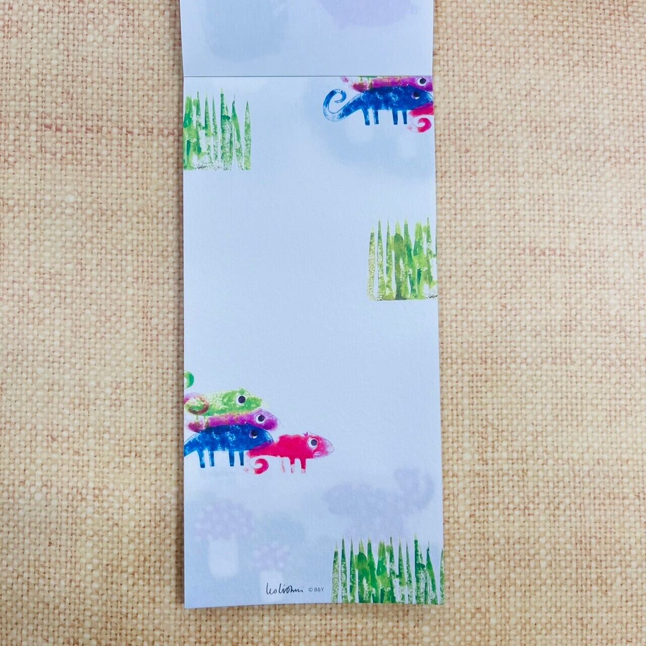 カメレオンのキャラクターをモチーフにしたデザインの一筆箋