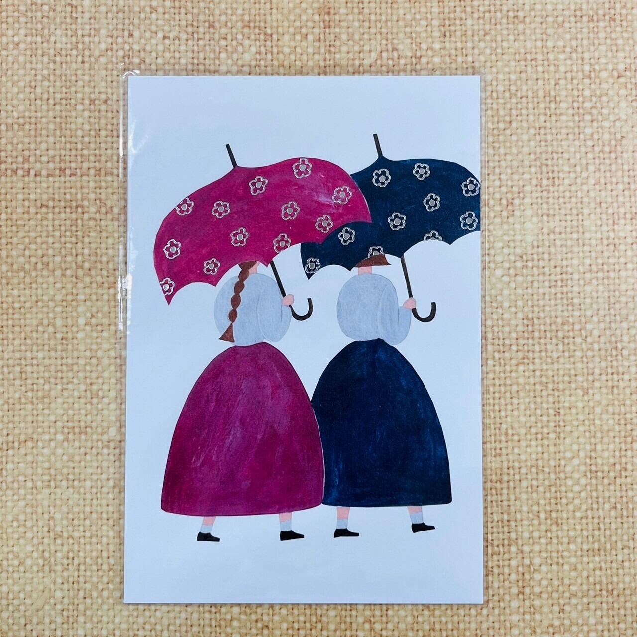 ネクタイ おはな柄の傘 箔押しポストカード
