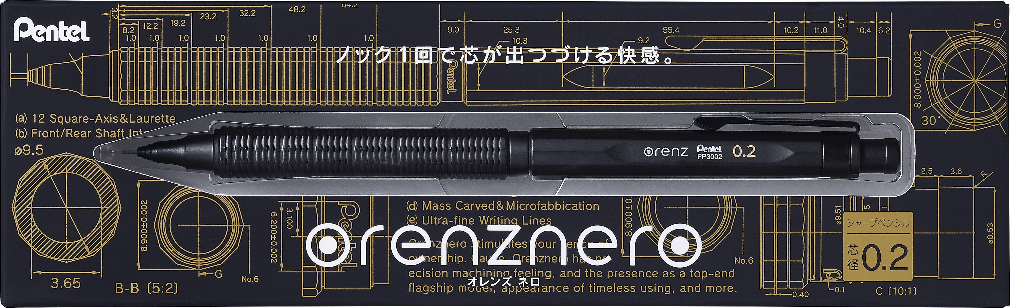 ペン先を紙面から離すたびに芯が出てくる自動芯出し機構を搭載した