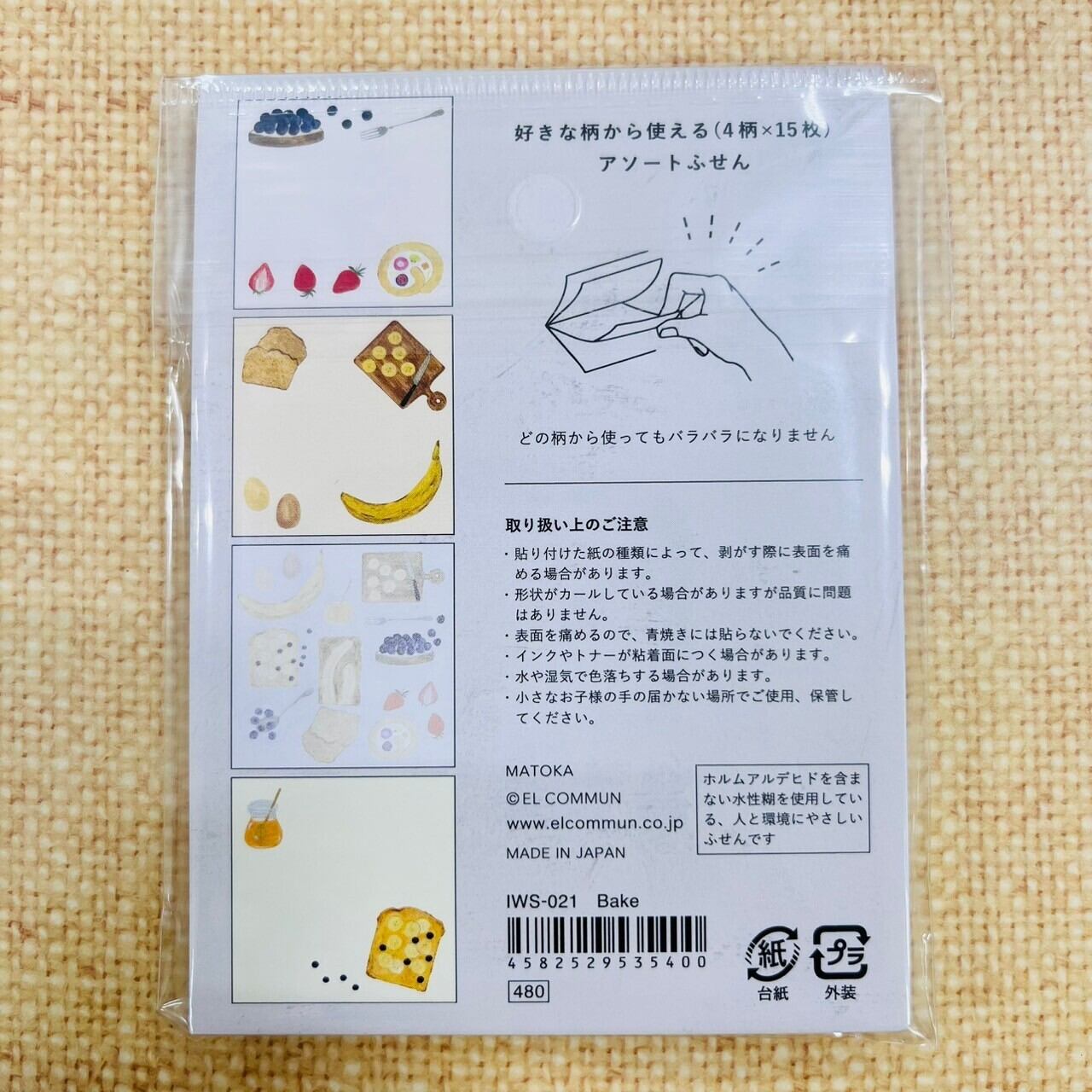 4種のデザインが1冊になった付箋なので、どの柄からめくってもバラバラになりません
