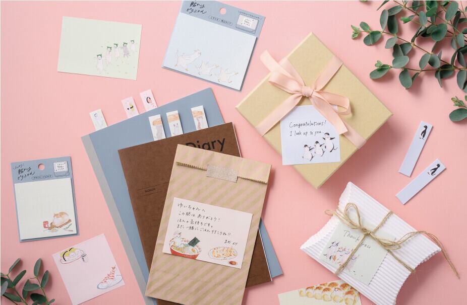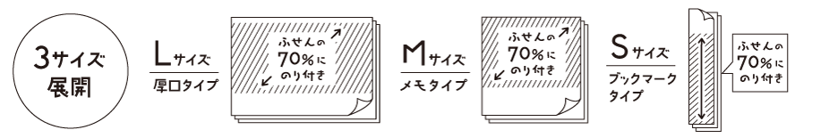 Mサイズ(メモタイプ)は、ちょっとしたお礼や伝言を伝えるときや、PC周り・カレンダーなどに貼るメモとしてちょうどいいサイズです