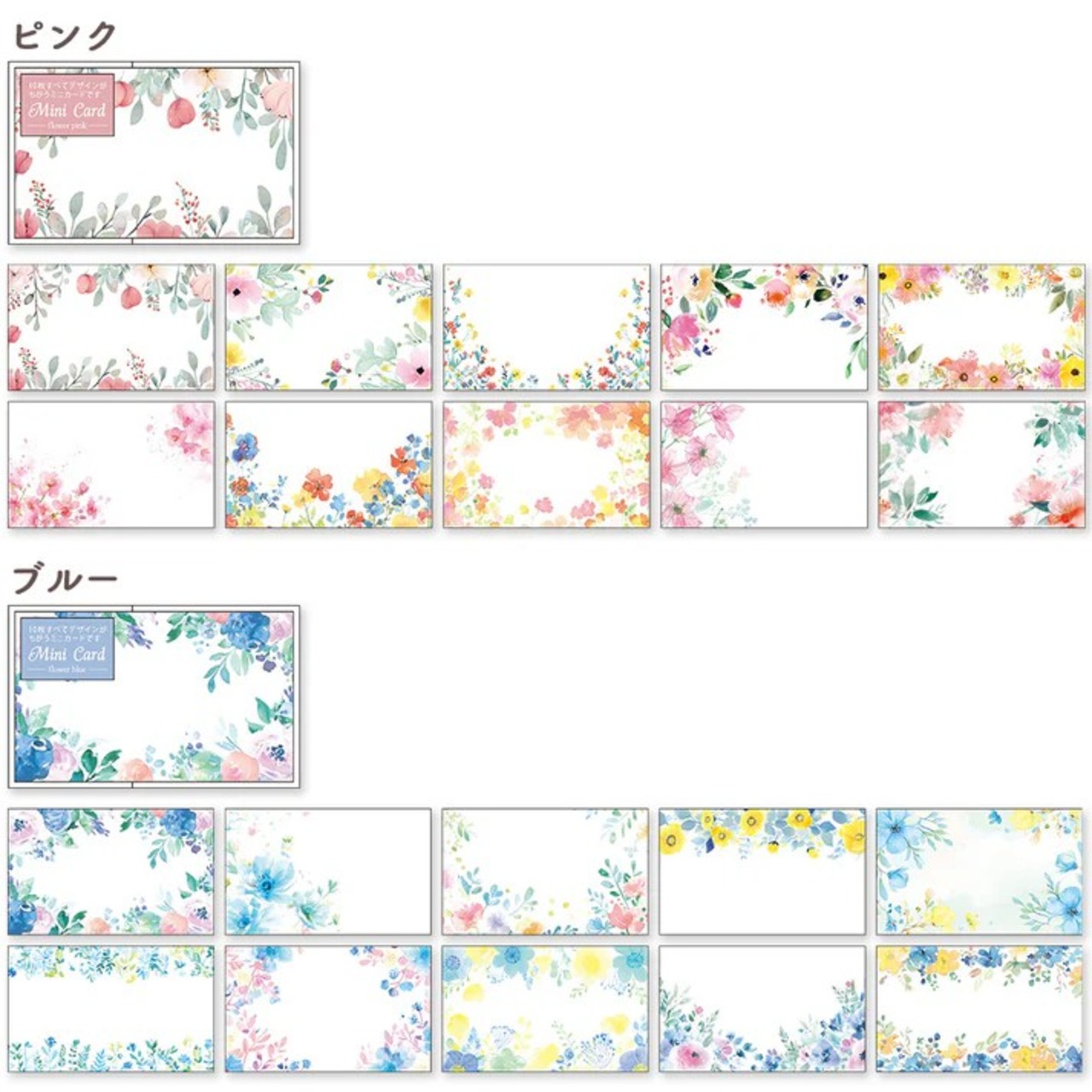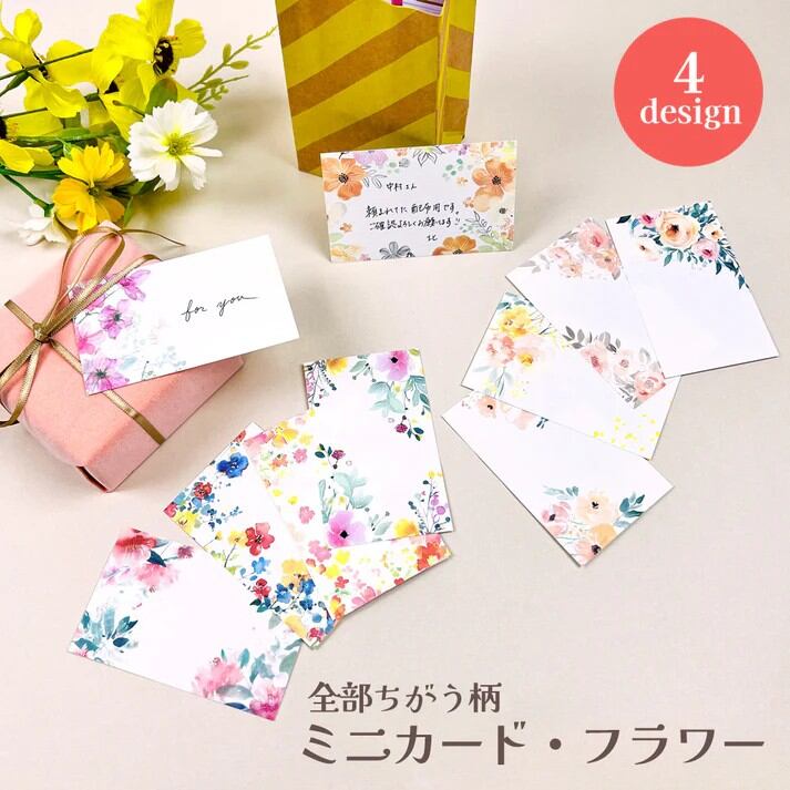 水彩タッチで描かれた色鮮やかな花柄が美しい、全て異なるデザインのミニカード・フラワー