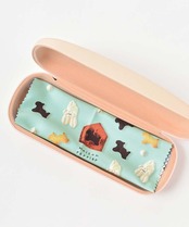 お菓子で作られた可愛らしい犬がプリントされたメガネケース