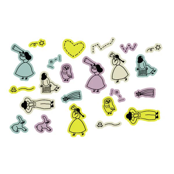 夜空を見上げながら思い思いに過ごす人たちの様子が楽しいマスキング素材のフレークシール